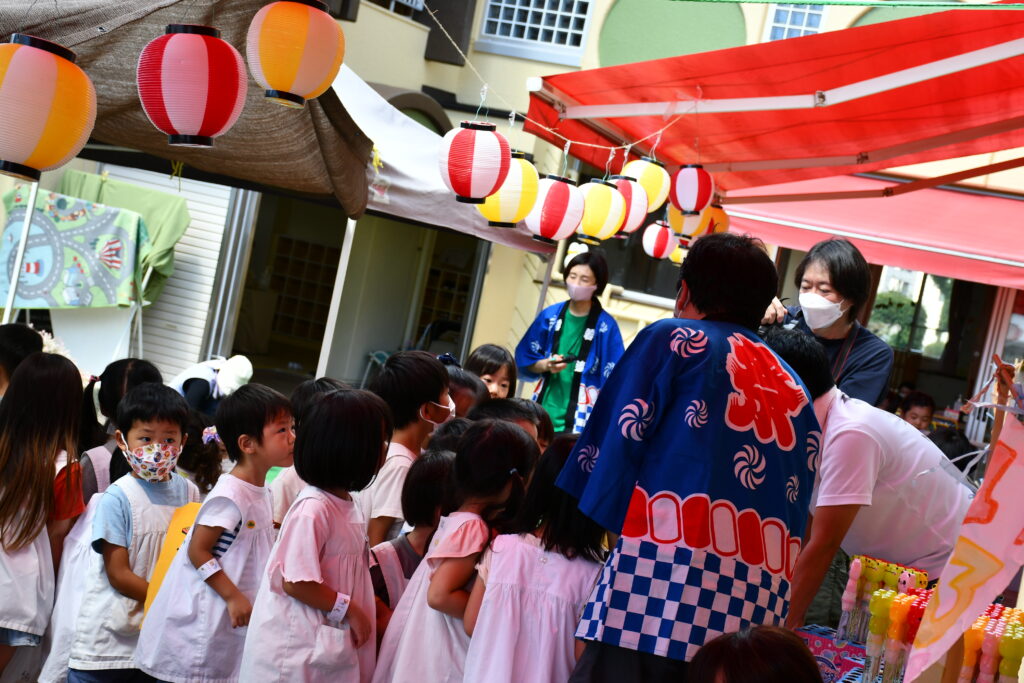 延期をしていた1カ月遅れの盆会・盆踊り。 朝、登園するとお祭りのちょうちんが出迎えてくれ ワクワクドキドキの子ども達。 盆会を行っている間に小さいクラスのお友達が先に夏祭りを楽しみました。 サイコロを振って出た動物のシャボン玉がもらえました... -