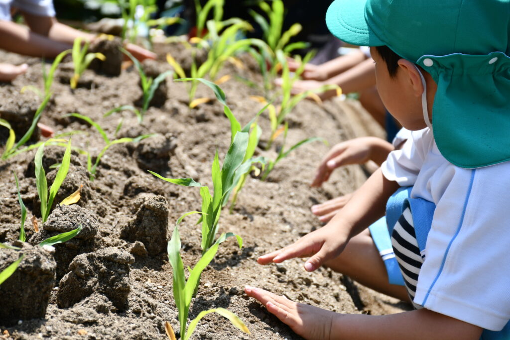 先日、種をまいておいたトウモロコシから芽が出て 葉っぱが黄色くなってきました。 ”これはたいへん!!!!”肥料不足の合図のようです。 早速、畑スペースへ移動しなきゃ!と年中と年長のお友達が手伝ってくれました。 夏にはみんなで焼きトウモロコシだ... -