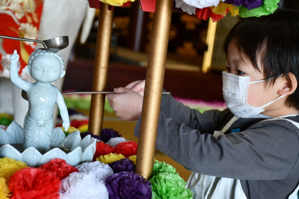 はなまつり 今日はとてもお天気に恵まれ、園庭には元気な声が広がっています。昨日入園した子ども達も今日から慣らし保育がスタートしました。半日でしたが、笑顔が見られて一安心です。 4月8日はお釈迦の誕生を祝う”はなまつり”です。保育園の隣にある... -
