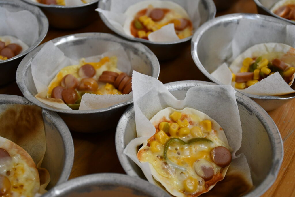 新型コロナ感染拡大防止のため見合わせていたクッキングを行いました。 年中さんにとっては初体験です。エプロンをつけるのも楽しそうでした! 月刊絵本で美味しそうなピザを見てからみんなで作ってみたいという気持ちが高まり 画用紙で何回も作って楽しん... -