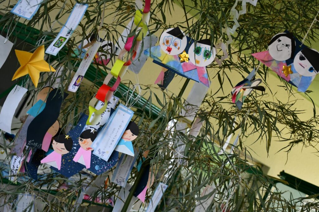 先日七夕会を行いました。 階段にはみんなの作った素敵な七夕飾りやお願い事が飾られています。 織姫と彦星は会えたのかなぁ… 運動会の準備体操も先生たちがノリノリで紹介してくれましたよ! みんなでダンスしようね! -