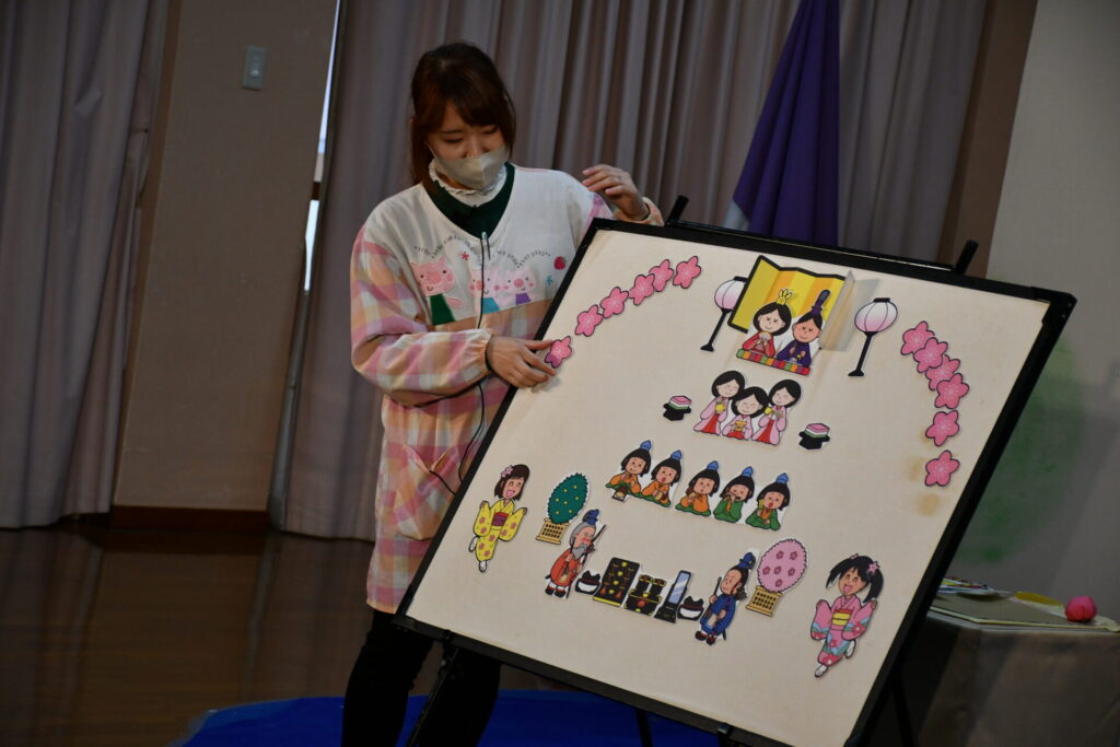 今日はすこし早いひなまつりかいでした。 ”えんやらもものき”のわらべうたでひなまつり会がスタート ひなまつりのパネルシアターを楽しみました。みんなでお雛様を歌いながら飾りました。いろんなクイズでお雛様のことがたくさん知ることができましたね! ... -