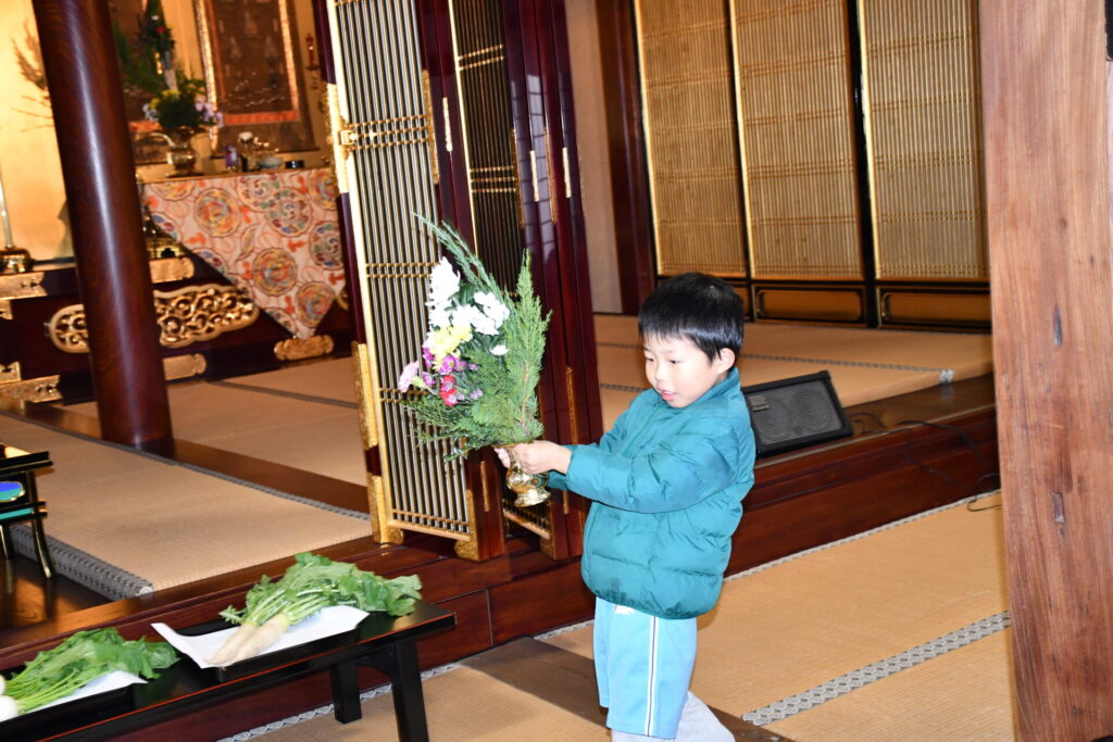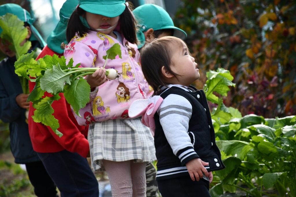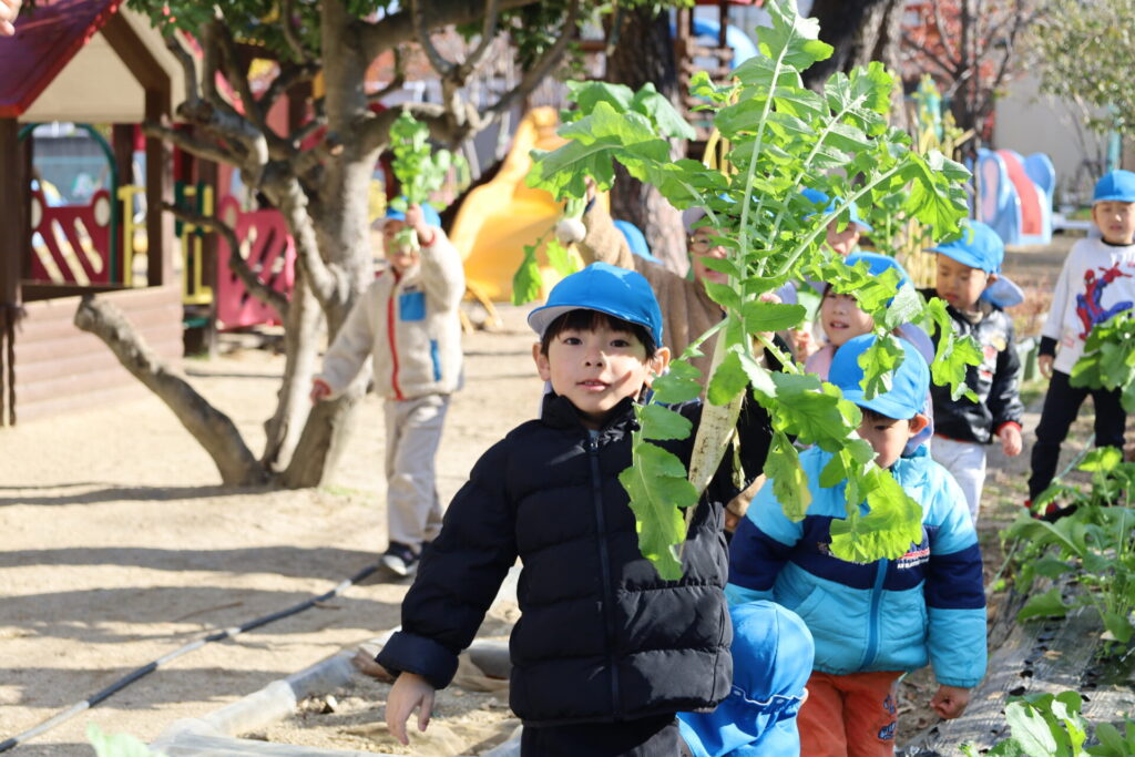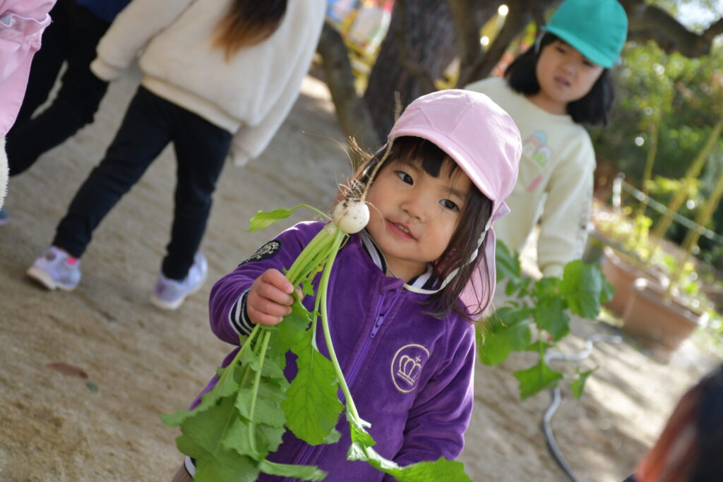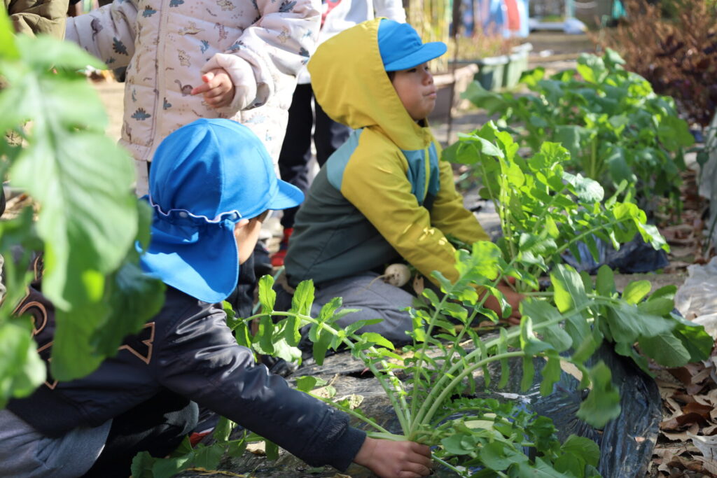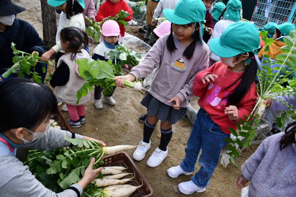 園で収穫した”だいこんとかぶ”をお供えしましたよ!