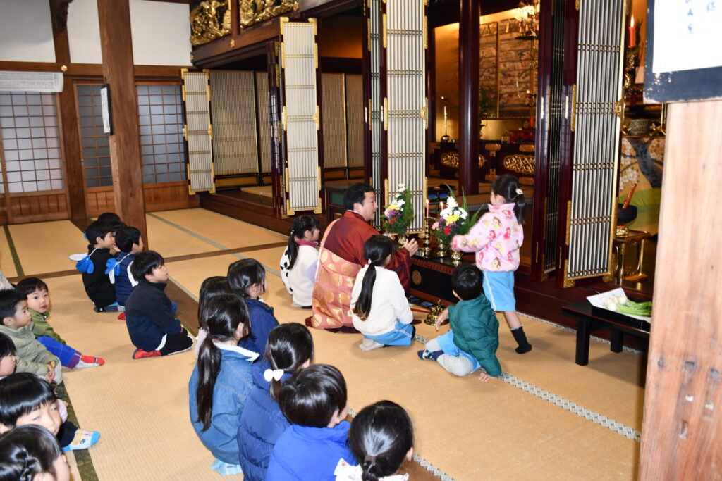 保育園の隣にある西蓮寺へ”ほうおんこう”のお参りに行きました。